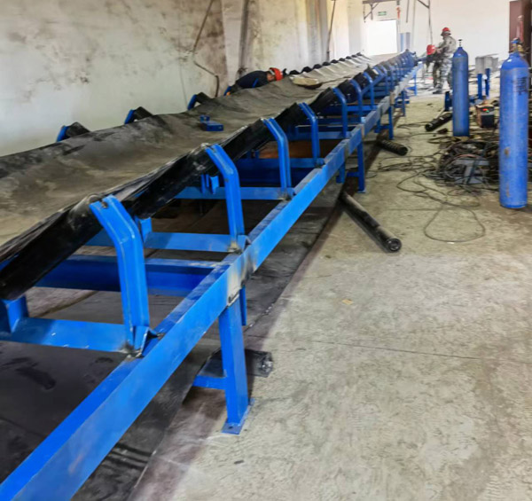 皮带输送机安装规范 1、从机头安装,然后顺次安装各节中间架,再安装尾架。 安装机架前,首先要在输送机的全长上拉中心线。由于保持输送机的中心线在直线上是输送带正常运行的重要条件,因此在安装各节机架时,必须对准中心线,机架对中心线的允许误差为±0.1mm。 2、安装驱动装置时,应注意使皮带输送机的传动轴垂直于皮带输送机的中心线,使驱动辊宽度的中心与输送机的中心线重叠,减速器的轴与传动轴平行。同时,所有轴和滚筒都应找平。根据输送机的宽度,轴的水平误差允许在0.5-1.5mm范围内。安装驱动装置时,可安装尾轮等拉紧装置。拉紧装置的滚筒轴应垂直于皮带输送机的中心线。 3、安装机架、传动装置和拉紧装置后,可安装上下托辊的托辊架,使输送带具有缓慢变向的弯弧,弯曲段的托辊架间距为正常托辊架间距的1/2~1/3。托辊安装后,应尝试将其灵活轻快地旋转。 4、将机架固定在基础或地板上。皮带输送机固定后,可安装给料和卸料装置。 5、悬挂输送带时,先将输送带条铺在空载段托辊上,围绕驱动辊,再敷在重载段托辊上。 6、皮带输送机安装后,需要进行空转试验。在空转试验机中,应注意输送带运行中是否有偏差现象。驱动部分的运行温度。滚筒运行中的活动。清洁装置和导板与输送带表面的接触严密程度,并进行必要的调整。只有在所有部件正常后,才能进行带负运行试验机。 |
